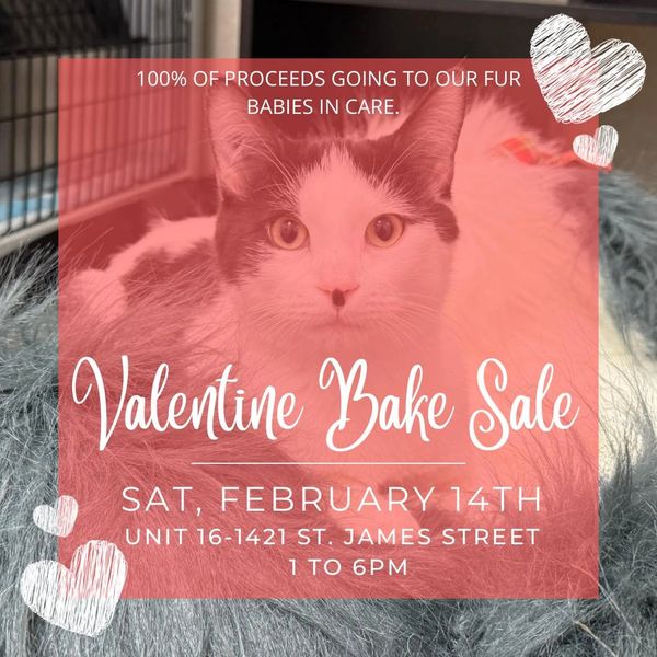 We are struggling a fair amount financially at the moment, so we have decided our shelter will be celebrating Valentine’s Day this year with a BIG bake sale fundraiser! 100% of the proceeds will be going to our fur babies in care!