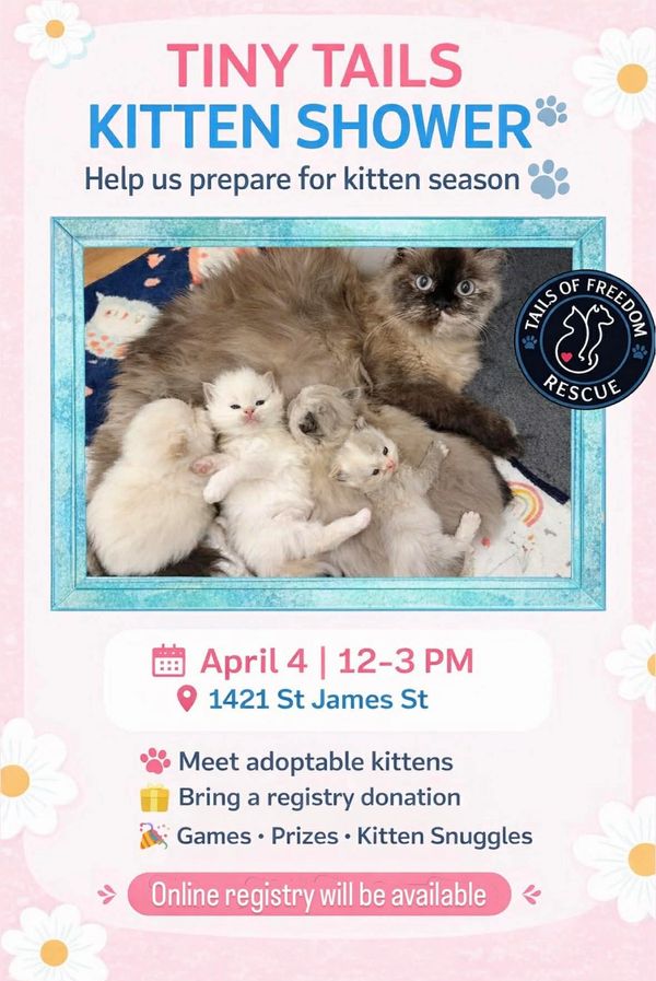Join us for a fun day of kitten cuddles and games, learn more about the rescue and what it takes to bring in kittens to care, check out the shelter and more!