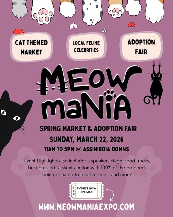 Come join us again at Meow Mania - the ultimate cat lovers event! You can visit many adoptable animals, support many local rescues, and shop until you drop while supporting so many amazing local vendors! 🐾